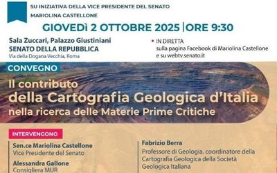 Oggi giovedì 2 ottobre 2025 dalle ore 9:30 presso il Senato della Repubblica si terrà il Convegno "Il contributo della Cartografia Geologica d'Italia nella ricerca delle Materie Prime Critiche". L'evento potrà essere seguito anche online su webtv.senato.it. Per l'Istituto di Geoscienze e Georisorse interverrà il Direttore Andrea Dini.